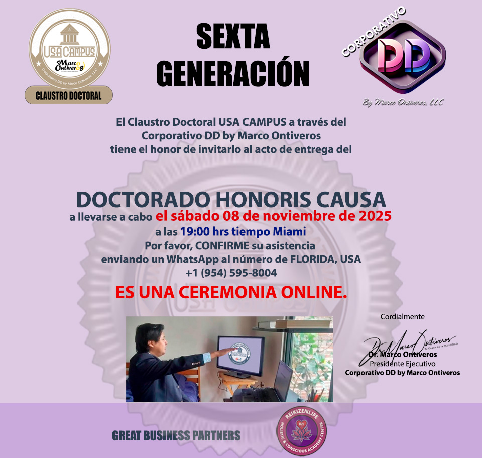 La Ceremonia de Reconocimiento del Doctorado Honoris Causa es un magno evento organizado por el Corporativo DD by Marco Ontiveros y el Claustro Doctoral USA Campus