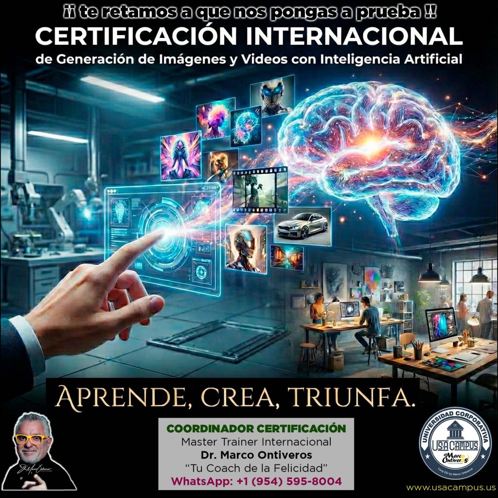 La Certificación Internacional de Generación de Imágenes y Videos con IA es un viaje creativo donde descubrirás cómo transformar ideas en realidades visuales sorprendentes.